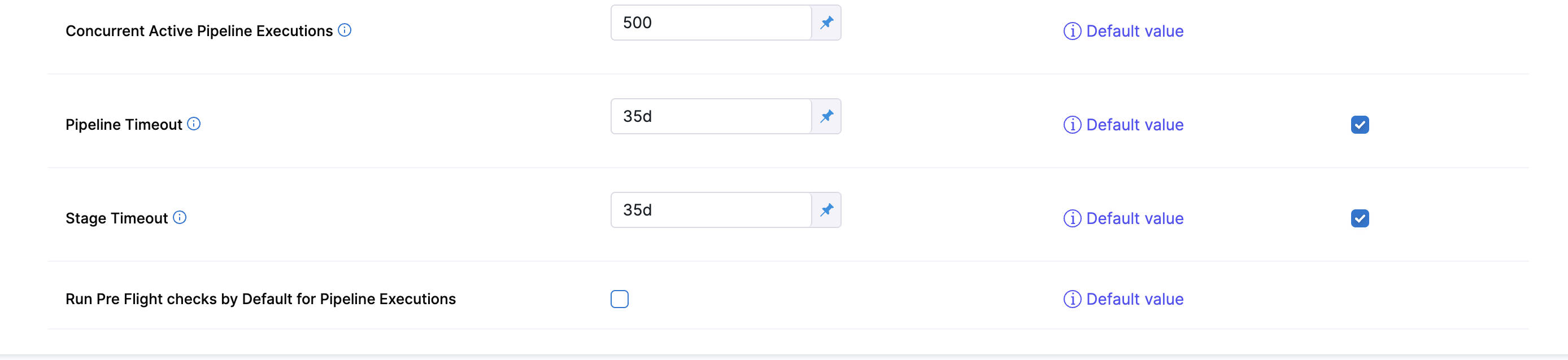 For information about these settings, go to Pipeline settings.